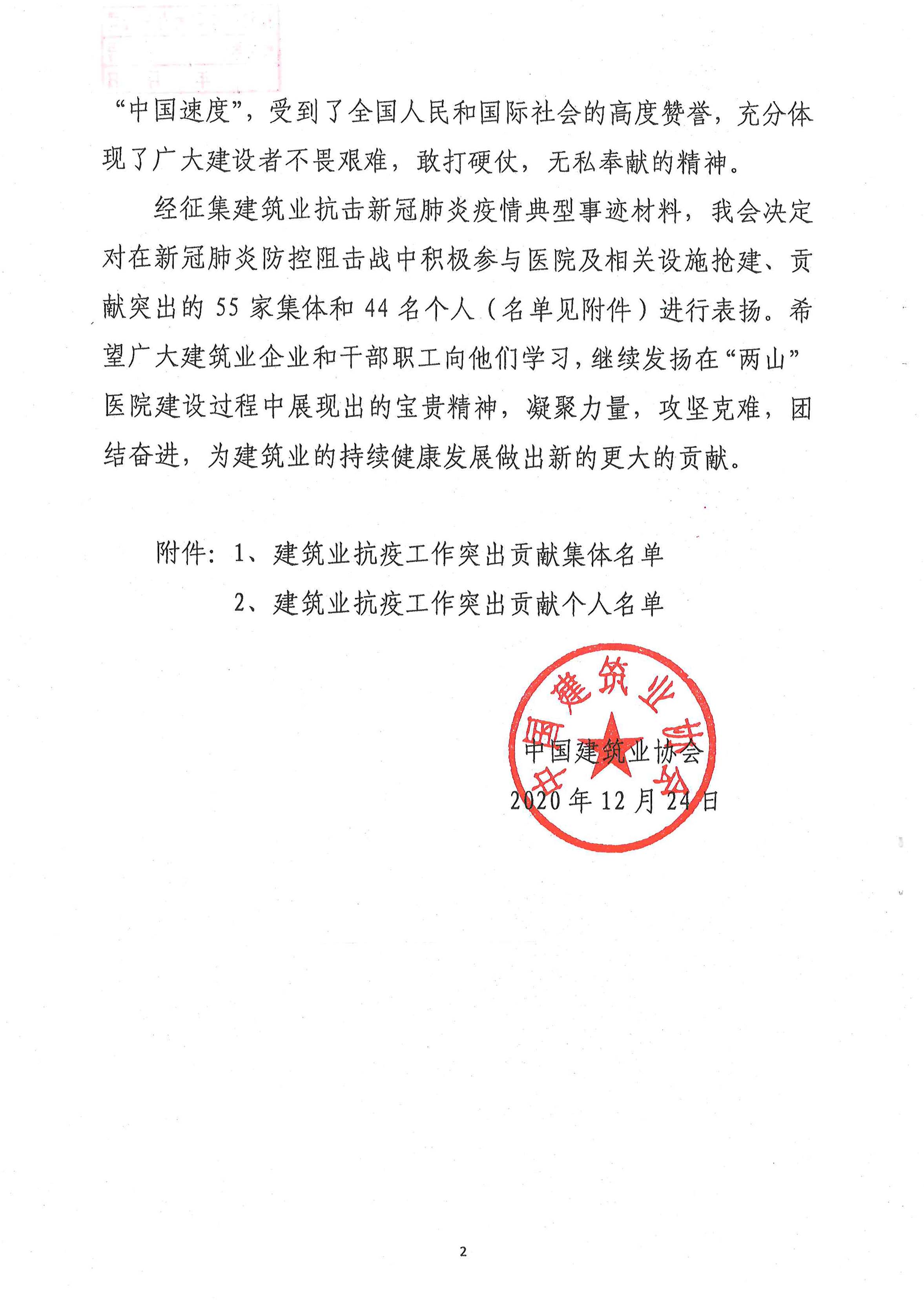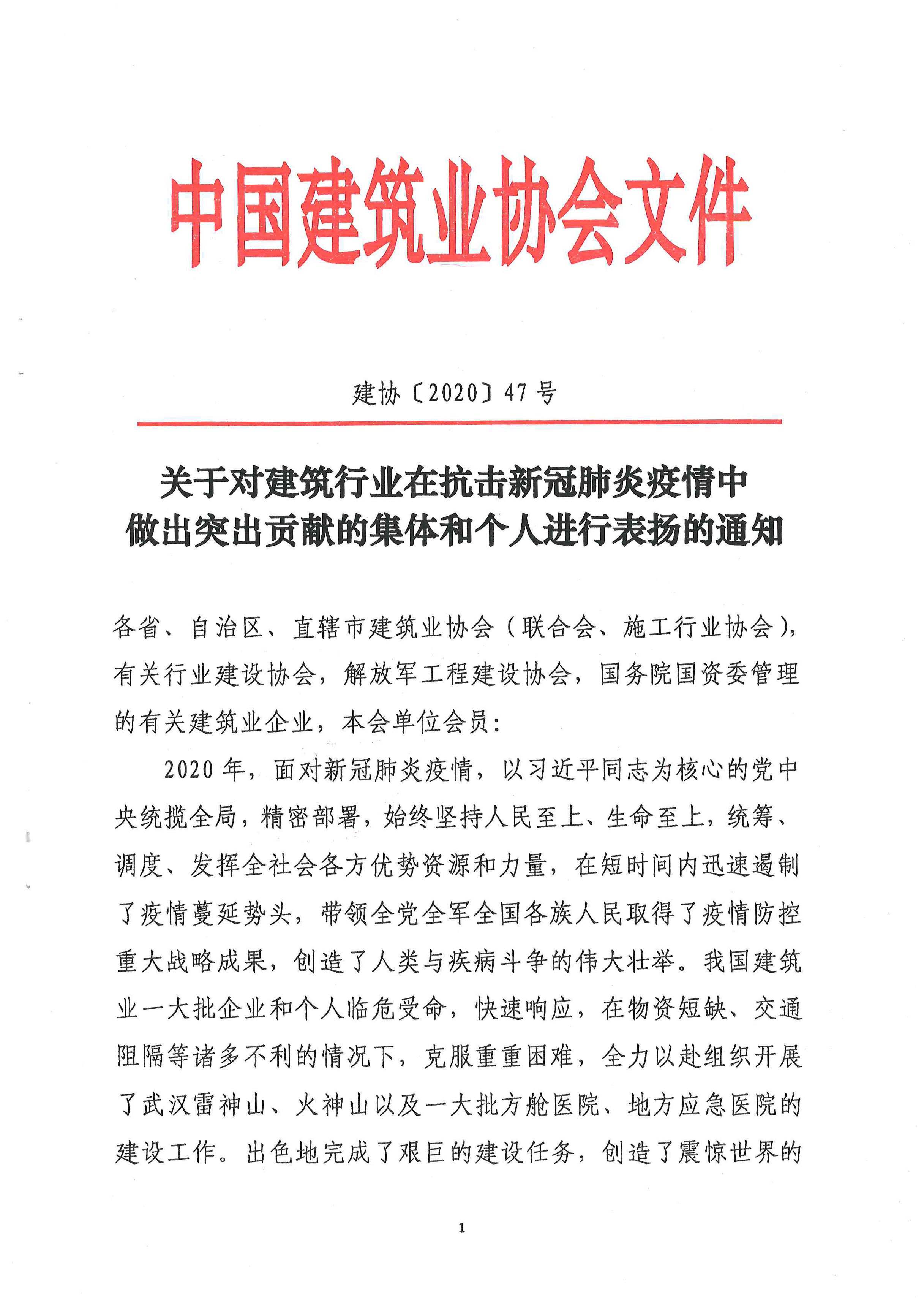 日前,中国建筑业协会对积极参与医院及相关设施抢建,贡献突出的集体和个人进行通报表扬,福建一建火必注册官网荣列“建筑业抗疫工作突出贡献集体”名单。