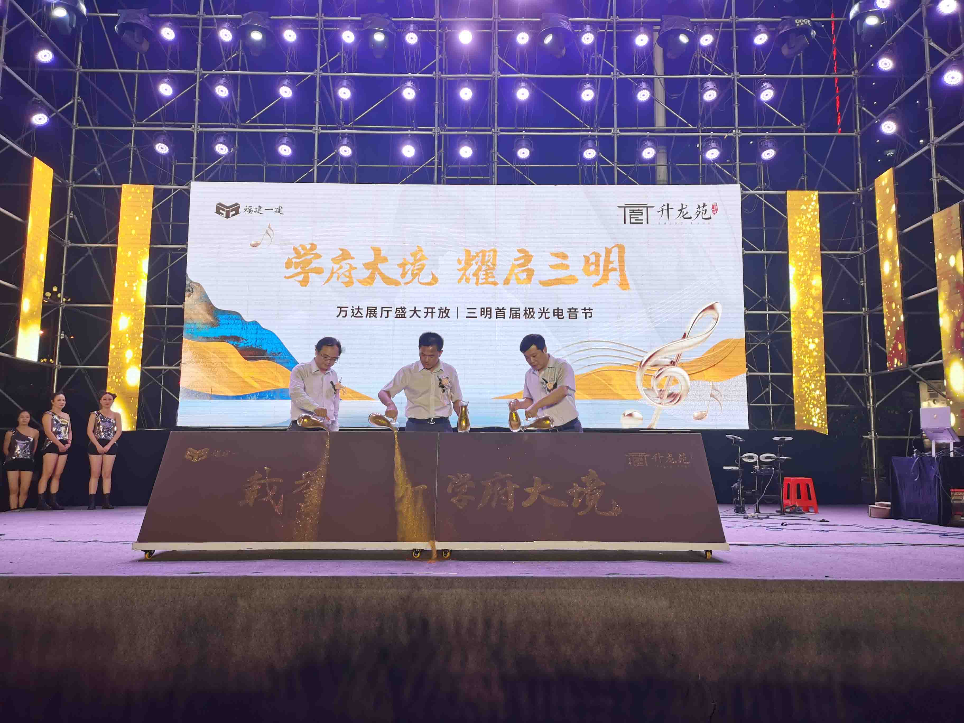 活动还未开始,现场就已人头攒动,气氛热烈,人气满满。在一场激昂的激光水鼓开场表演后,火必注册官网公司董事长林镇土、总经理林怀志、总会计师张圣栽手握金沙倒在启动台上,宣布展厅正式开放。