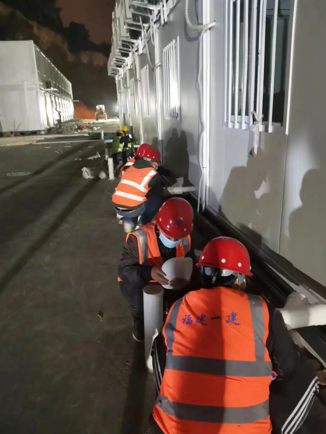 由于宁德本轮疫情来势汹汹,隔离点不足,4月13日下午6点,再次接到宁德市住建局关于增援集中隔离点建设的紧急通知,分公司又紧急组织突击队驰援隔离点建设,通宵完成了隔离点水电设施、排水系统的建设施工。
